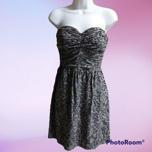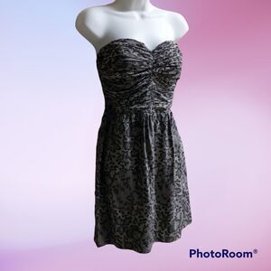 Rebecca Taylor Strapless Black & Lavender-Taupe Silk A-line Mini Dress, size 6