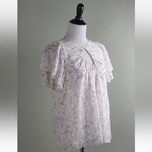 Rebecca Taylor White Flutter Sleeve Blouse with Ruched Bib Collar, US2