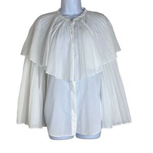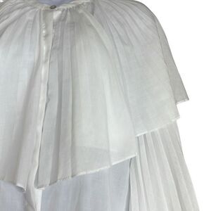 Rebecca Taylor Womens Large Voile Plisse Button Front Statement Blouse White Wide Pleated Sleeves