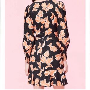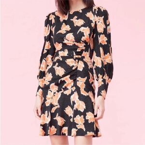 Rebecca Taylor silk/viscose Elegant Black Long Sleeve Dress with Floral Patterns
