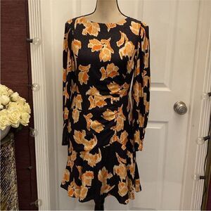 This stunning dress features long sleeves and a captivating floral design, making it a perfect choice for both casual and formal occasions. The elegant black fabric provides a timeless look, while the intricate floral patterns add a touch of sophistication. New, no tags