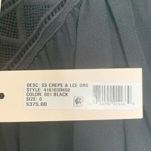 NWT $375 Rebecca Taylor Black Crepe and Lace Short Sleeve Dress Size 0 Cocktail.