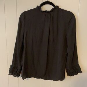 Rebecca Taylor Black Silk Blazer with Ruffle Sleeve Detail Size 8