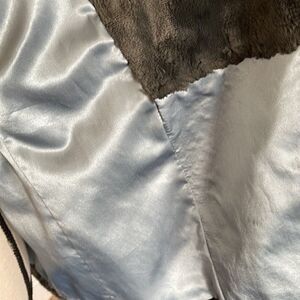 Thai jacket is so soft , like a baby blanket. Good shape has two snaps but the one on the inside is missing. Really pretty!