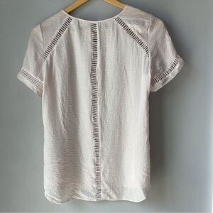 Gorgeous palest pink Ladder Stitch Textured Silk Top by Rebecca Taylor. In Gently Pre Loved Condition.