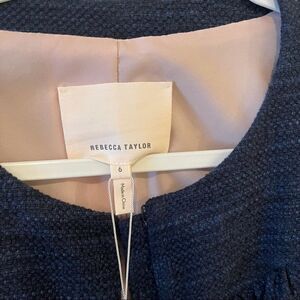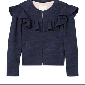Rebecca Taylor Navy Blue stretch Tweed ruffle jacket