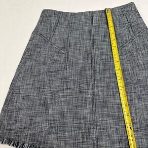 Slub Suiting A-Line Skirt with Fringe Hem Sits at natural waist. A-line silhouette. Hidden back zip. Fringe hem. Excellent in preowned condition.