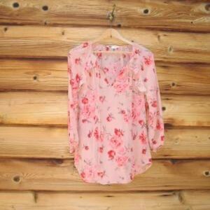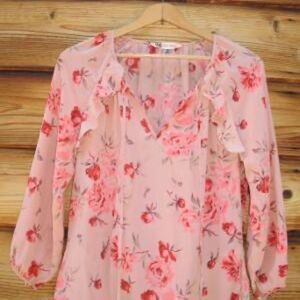 REBECCA TAYLOR SILK ROSE GARDEN BLOUSE IN ROSE TEA STAIN. SIZE 4.
