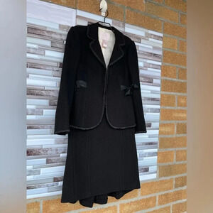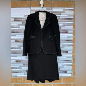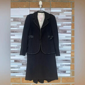Retail $525 wool blend 2 piece suit blazer have 2 bows in front skirt have a pleaded style in back front straight. Beautiful and elegant perfect for business affairs.