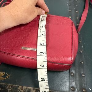 The Rebecca Minkoff Regan Camera Bag in red is a stylish and compact crossbody bag designed for women. Made from leather with a fabric lining, this small-sized bag features a zip closure and a comfortable leather handle/strap. The Rebecca Minkoff Regan model combines functionality with fashion, making it an ideal accessory for everyday use.
