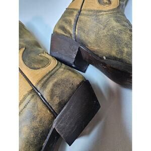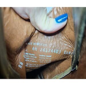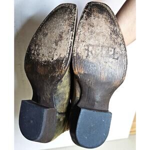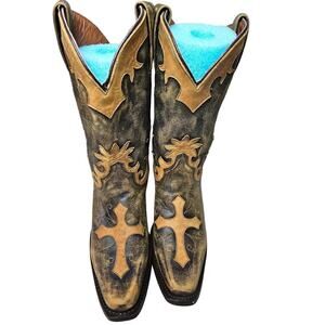 Rebel Cowboy Boots Sz6.5 W's. Leather top and Soles handmade. Cutout Cross and all over accents. Distressed look. Artsy. Cowgirl. Rodeo. Showoff. Standout. Made in Mexico. Art to wear. Western. Boho. Country. In excellent condition. Please See ALL pictures for details and measurements. Ships Fast. Offers Welcome.