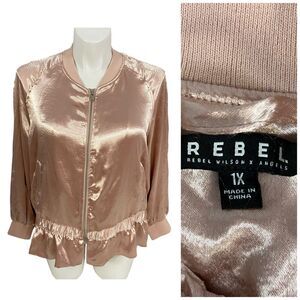 Rebel Jacket Womens 1X Satin Bomber Peplum Zip Up Pink Work Office Casual Date