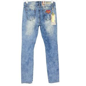 Rebel Love Women Distressed Patch Mid Wash Blue Skinny Stretch Jean Sz 13/14 NWT