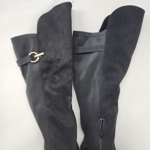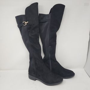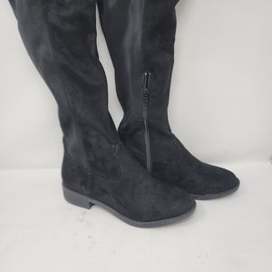 Rebel Riding Boots Womens 7.5 Black Onley Suede Almond Toe Knee High Fashion Boots