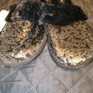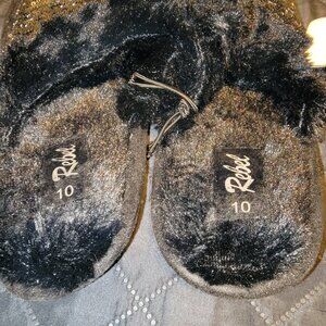 Rebel Slipper Sequin Silver Black Scuff Slide Super Soft Faux Fur 9-10 9 10 bottom says 9-10 but also shows just 10 on bottom and inside