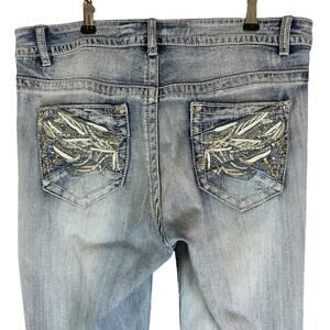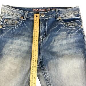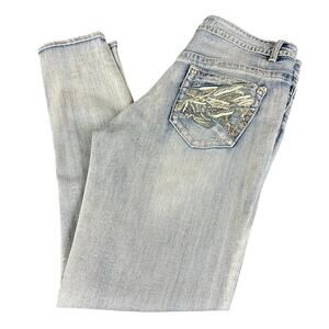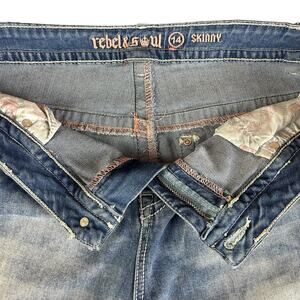 Rebel & Soul Jeans Women Size 14 Blue Stone Fading Whiskered Wash Skinny Mid Rise