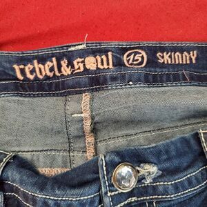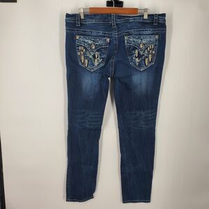 Rebel Soul Jeans Womens Size 15 Blue Skinny Mid Rise Stretch Embellished Pocket