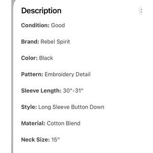 Rebel Spirit Embroidered Skull Rose Long Sleeve Button Down - Small