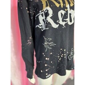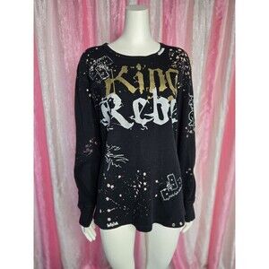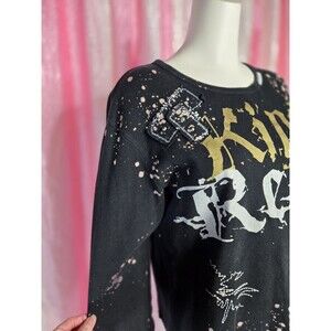 Rebel Spirit King Studded Thermal Hip Hop Black T-Shirt Size Large