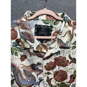 Rebel Vengeance Dragon Floral Print Button Up Shirt Boho Asian Style Men Size 2X