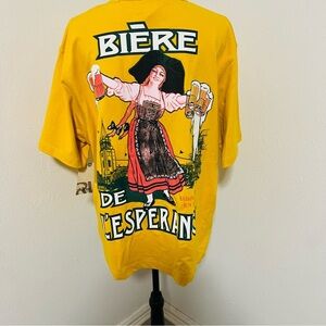 Rebel Vengeance Large “BIERE DE L’ESPERANCE” Cotton Yellow Graphic Tee NWT