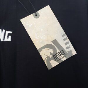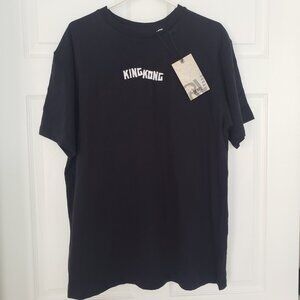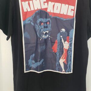 Brand new with tags men's Rebel Vengeance King Kong & Ann Darrow 1933 poster t-shirt. Fabric is black and size is X-Large. The poster depiction is on the back of the shirt, and "King Kong" is embroidered on the front.