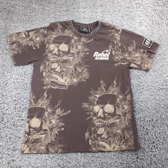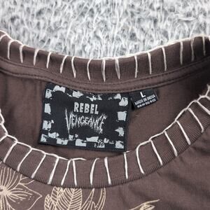 Rebel Vengeance Shirt Adult Large Brown Embroidered Graphic Skull Floral Tee
