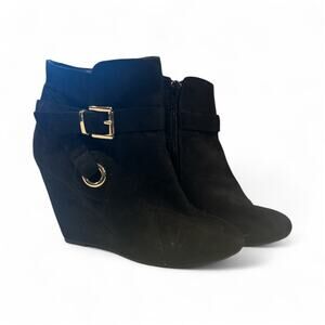 Rebel by Zigi Womens Keylie Faux Sued Wedge Boots Black - Size 8