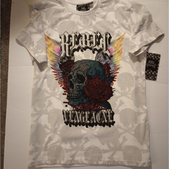 🆕☠️Rebel Vengeance Rhinestones Graphics Tee