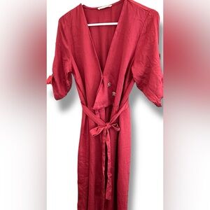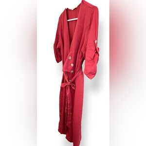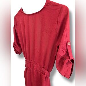 This elegant red dress features a flattering V-neck and stylish button-down design. Perfect for any occasion, it offers a comfortable fit with its adjustable waist tie. Never been worn