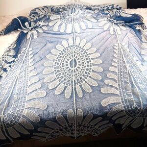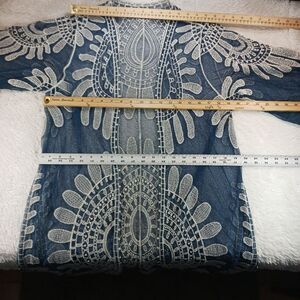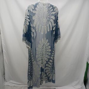 Rebellion Again Boho Duster Open Front Blue White Kimono Sheer Embriodery Large