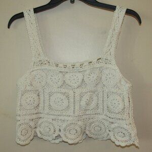 Rebellion Again Ivory Crochet Cropped Tank Top sz XS Boho Hippie Festival Beachy