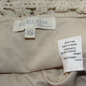 Rebellion Again Ivory Crochet Cropped Tank Top sz XS Boho Hippie Festival Beachy. Lined.