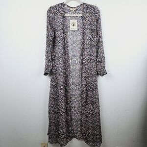 Rebellion Again Semi-Sheer Floral Duster Cardigan NWT, size XS