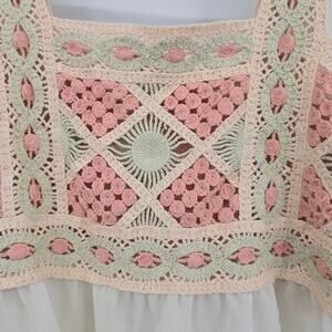 Rebellion Again Women's Boho Crochet Sheer Ruffle Chiffon Cropped Blouse Medium