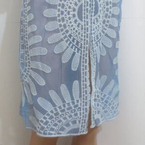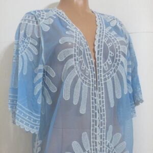 Rebellion Again Blue & White Lace Cover Up Kimono in Floral Medallion Sz S NWOT