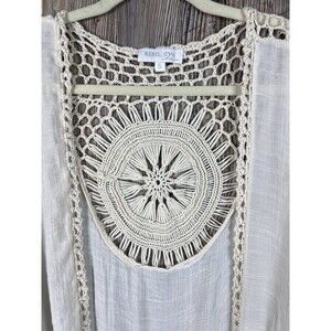 Rebellion Crochet Cardigan Womens Sm Open Knit Duster Fringe Boho Festival Retro