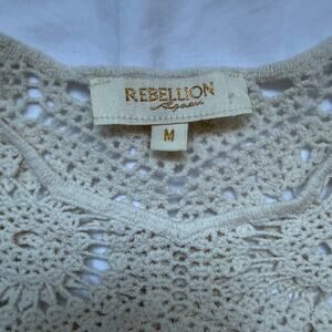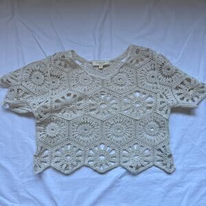 Rebellion Crochet Short Sleeve Cropped Sweater, Size M, Cream, EUC