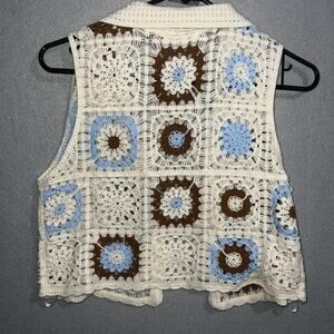 Rebellion Vest Womens Small Knit Boho Collard Crochet Layering Granny