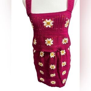 Rebellion pink floral crochet tank and skirt set small nwt