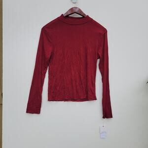 Features: Your new need-now top: Rebellious One's frilly mock-neck top, a simple throw on that always looks good. Fitted, Mock neckline, Lettuce edges, Unlined. Rayon/spandex. Maroon, burgundy.