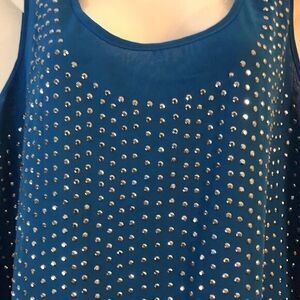 Rebellious One top Size Large deep turquoise studded semi sheer witchy grunge