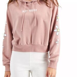 Rebellious One Juniors' Floral-Sleeve Not Today Hooded Sweatshirt Rose Large