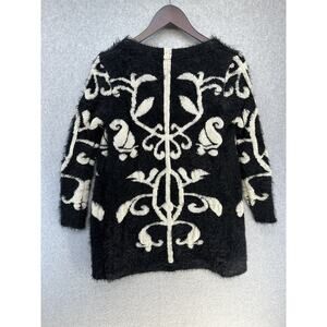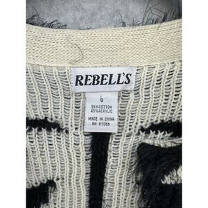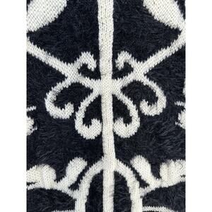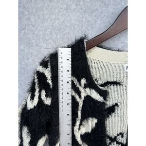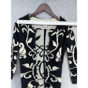 Rebells Womens Open Cardigan Fuzzy Black Cream Floral Print Long Sleeve Size S