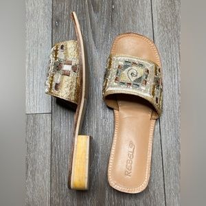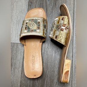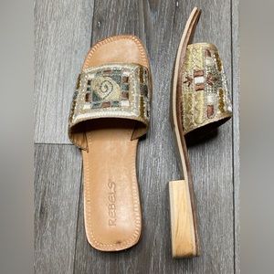 Rebels Block Sandal Multicolor Beaded Slip On Size 9