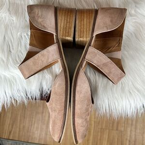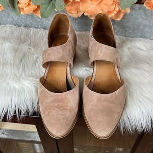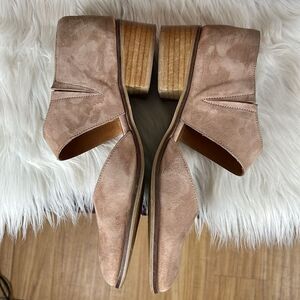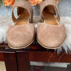 These are in great use condition. They do have a few minor marks from normal wear. No scuffing on the toes or heels. 1.5 inch block heel. Beautiful soft taupe suede.