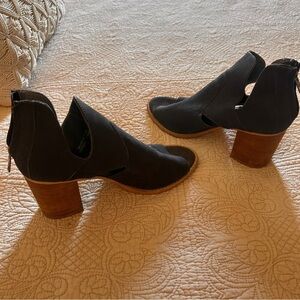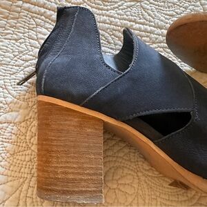 Rebels Woman’s Chic Navy Blue Heeled Ankle Open Toed Zip on Leather Shoe Size 9