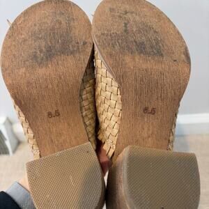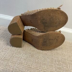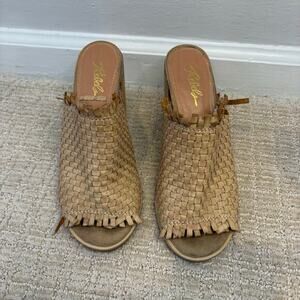 Rebels Womens 6.5 Tenley Beige Basket Weave Leather Stacked Heel Mule Shoes