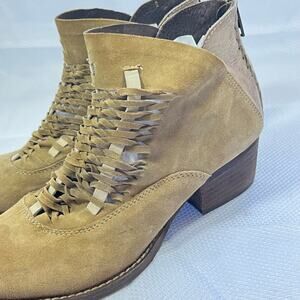 Rebels Women's Cori Boot Size 9 Block Heel Braided Front Brown Tan Suede Bootie