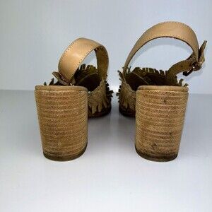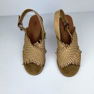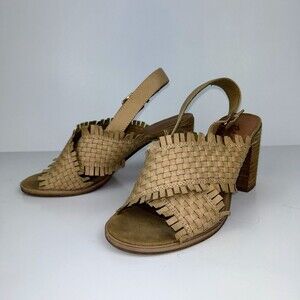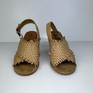 Rebels Woven Cross Front Sandal Open Toe Block Heel Tan Slingback Buckle Sz 7.5